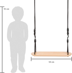 Ta gugalnica vam omogoča uživati zabavne trenutke na prostem ali v notranjosti. Močne vrvi so višinsko nastavljive in kovinski obročki omogočajo hitro obešanje. Narejena iz masivnega lesa in odpornih vrvi, je idealna tudi za odrasle zaradi svoje visoke nosilnosti.