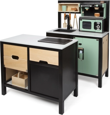 Small Foot otroška kuhinja z industrijskim dizajnom in kuhinjskim otokom