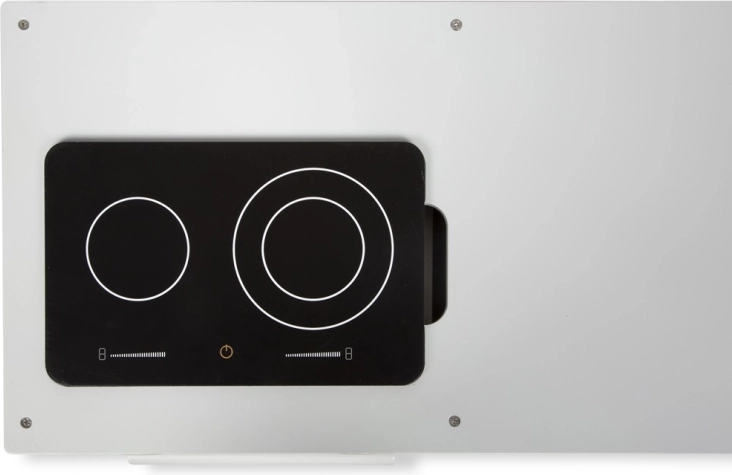 - kuhalna plošča, pečica, mikrovalovna pečica, hladilnik z izdelovalnikom ledu, kavni aparat, odpirajoča se vratca, shranjevalni prostori