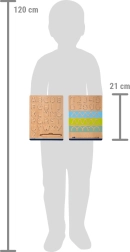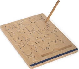 Masivna izdelava iz FSC® certificiranega lesa je trpežna in prijetna na dotik. Integrirano držalo za svinčnike poskrbi, da so pripomočki vedno pri roki, dve varni leseni svinčki brez mine pa omogočata čisto ponavljanje brez papirja. Odlično za domačo vadbo, vrtce in pripravljalne šolske razrede.