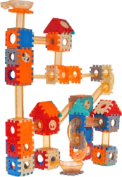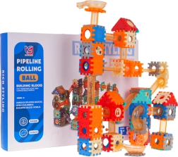 Ta veliki set vsebuje vse, kar otroci potrebujejo za ustvarjanje impresivne kroglične steze: kocke z zaskočnimi spoji, dele toboganov in prozorne cevi. V navodilih boste našli navdihujoč model, prava zabava pa se začne pri lastnem načrtovanju – modularni sistem ponuja številne možnosti gradnje, močni spoji pa zagotavljajo stabilno konstrukcijo.
