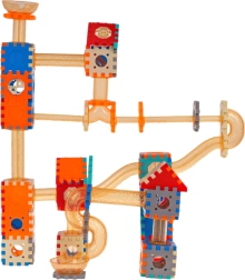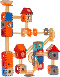 Veliko število elementov, različne oblike kock in modularni deli steze omogočajo gradnjo preprostih in kompleksnih konstrukcij povsem po otroški domišljiji.