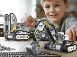 Iz enega seta lahko sestavite tank, harvester, viličar in gosenični bager – vsak model ima premične dele in je pripravljen za daljinsko vodenje.