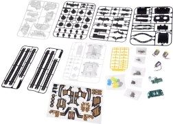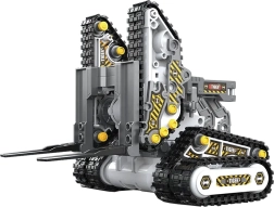 Ta vsestranski gradbeni komplet ponuja otrokom in staršem ure zabave in učenja. Iz enega seta lahko sestavite do 4 različne modele – tank, stroj za sečnjo, viličar in gosenično gradbeno bagersko garnituro. Po priklopu akumulatorja in vstavitvi baterij v upravljalnik modeli oživijo in jih lahko udobno upravljate.