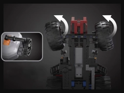 Dva motorja M, motor L in natančen servomehanizem zagotavljajo vožnjo naprej/nazaj in natančno krmiljenje. Na daljavo dvigujte zadnjo vlečno kljuko in obračajte nosilec za 180°.