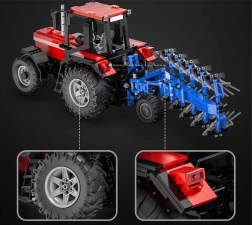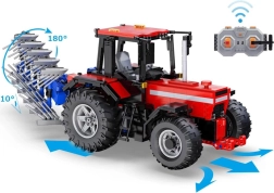 Po sestavljanju dobite daljinsko voden traktor s podrobnim kokpitom, kjer ročica služi kot glavno stikalo. Cenili boste nastavitev volana in sedeža, gibljive blatnike, odpirajoč se pokrov motorja ter možnost montaže dodatne opreme. Ne manjkajo dvigovanje zadnje vlečne kljuke in obračanje pritrdilnega nosilca za 180°, kar verno posnema realne kmetijske operacije.