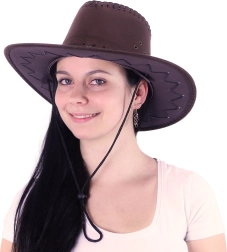 Postanite zvezda vsake zabave s tem izrazitim kavbojskim klobukom v rjavi izvedbi. Tekstilni material z dekorativnim prešivanjem v slogu »X« in cik‑cak mu daje edinstven karakter, medtem ko prezračevalne luknjice zagotavljajo udobje tudi pri daljšem nošenju.