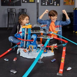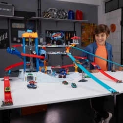 Pripravite se na napad gorile z največjim kompletom ZURU Metal Machines! Ta večnivojska konstrukcija bo pognala dirkalne avtomobile do maksimuma in vam zagotovila adrenalin. Zahvaljujoč parkirnim mestom in postajam za avtomobile, vključno z dvigalom, ponuja optimalen prostor za do 20 vozil.