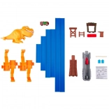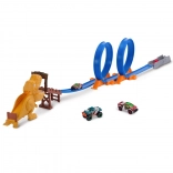 Proga vključuje dve kaskaderski zanki, ki prinašata veliko zabave in vznemirjenja. Del paketa je tudi dirkalni avto Metal Machines in figura T-Rexa, ki predstavlja grožnjo za mesto na koncu proge. Priporočeno za otroke od 4 let naprej.