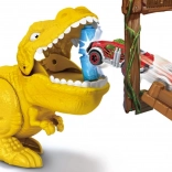 Zuru Metal Machines T-Rex Napad povabi otroke v svet dirkalnih avtomobilov in dinozavrov. Pokaži, ali imaš dovolj poguma in hitrosti, da premagaš ovire na progi dolgi dve sto metrov in šestdeset tri centimetre, kjer se T-Rex trudi ujeti tvoj mali dirkalni avto!