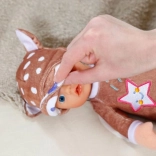 Lutka je oblečena v prikupen jelenji kostum, ki poudarja njeno ljubkost in privlačnost za otroke.