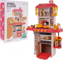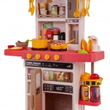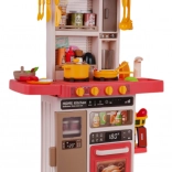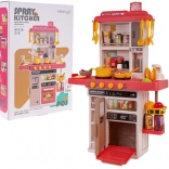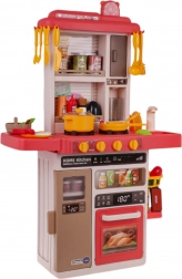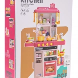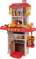 Obsežna otroška kuhinjica za male kuharje od 3 let ponuja svetlobne in zvočne učinke, pravo tekočo vodo iz pipe ter varno paro iz gorilnika. Bogat komplet 50 delov, kakovostna plastika v živih barvah in funkcionalni elementi, kot so vrtljivi gumbi, osvetljeni gorilniki, odpirajoča se pečica in “hladilnik”, zagotavljajo ure ustvarjalne igre.