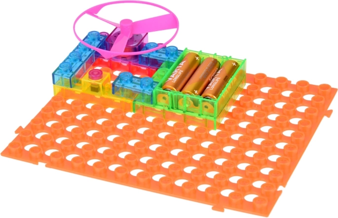 Ta interaktivni elektronski komplet razvija logično mišljenje, ročne spretnosti in naravno radovednost. Zaradi jasno označenih modulov otroci hitro razumejo principe prevodnosti, zaporedne in vzporedne vezave ter osnovna razmerja med napetostjo, tokom in uporom. Projekti prinašajo takojšnjo povratno informacijo – elisa se zavrti, diode zasvetijo in zvočnik zaigra.