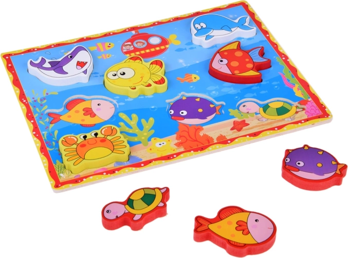 Igra je odličen trening potrpežljivosti in koordinacije oko–roka. Otroci ujemajo oblike z ustreznimi slikami, krepijo zbranost in širijo besedišče z imeni živali, kot so riba, morski pes, rak in želva.