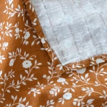 Komplet dveh muslinastih plenic iz 100 % organskega bombaža z nežnim cvetličnim potiskom. Lahek, zračen in vpojen material je idealen za hranjenje, kopanje in vsakodnevno nego dojenčka. Mere ene plenice 60 × 60 cm.