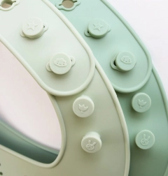 Širok in oblikovan žep ujame večino drobtin in kapljic, zato ostaneta oblačila in miza čista, otroci pa jedo udobneje.