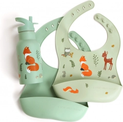 Ergonomska oblika in večtočkovno zapenjanje omogočata preprosto prilagoditev velikosti od dojenčkov do malčkov. En slinček krasi igriv motiv gozdnih živalic, drugi je v dopolnilni enobarvni različici – idealna kombinacija za vsakodnevno uporabo doma in na poti.
