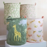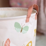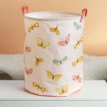 Praktična in prostorna shranjevalna košara z motivom metuljčkov pomaga ohranjati otroško sobo urejeno. Zaradi notranjega PE premaza je primerna tudi za zbiranje perila. Lahka, zložljiva in hkrati dekorativna dopolnitev otroške sobe.