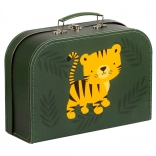 Ljubek komplet dveh otroških kovčkov z motivom tigra in džungle bo razveselil male raziskovalce. Ponuja vzdržljiv karton s poliesterskim prešivanjem, kovinski ročaj in zaponko ter dve različni velikosti za praktično razvrščanje igrač, zakladov in likovnih potrebščin.