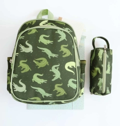 Praktičen nahrbtnik v temno zeleni barvi z ljubkimi krokodili bo razveselil vsakega otroka. Zaradi prostornine 16 l in mer 27 × 32 × 19 cm zlahka sprejme oblačila za vrtec, posodico za malico in najljubše igrače. Izoliran sprednji žep ohrani malico in pijačo dlje svežo, medtem ko sta dva stranska žepa idealna za steklenico s pijačo.
