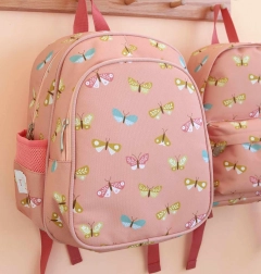 Stajliš rožnat nahrbtnik z motivom metuljčkov znamke A Little Lovely Company je idealen za vrtec in izlete. Ponuja prostoren glavni predal, izoliran sprednji žep za malico, stranska žepa za steklenico ter oblazinjene, nastavljive naramnice s prsnim trakom za varno in udobno nošenje.