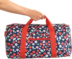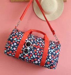 Ta stilska potovalna torba za otroke združuje igriv dizajn s praktično razporeditvijo za enostavno organizacijo stvari. Barvit potisk jagod pritegne na prvi pogled, medtem ko trpežen poliester prenese vsakodnevno uporabo in otroške dogodivščine.
