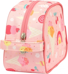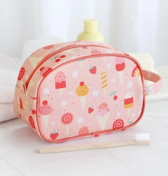 Ohranite otroške higienske potrebščine lepo skupaj. Ta toaletna torbica z igrivim motivom sladoleda je odlična za šampon, milo, zobno ščetko in pasto. Zahvaljujoč praktični zanki jo otroci zlahka prenesejo ali obesijo v kopalnici.