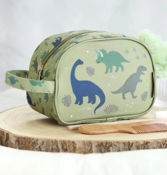 Ohranite otroško kozmetiko pregledno na enem mestu z ljubko toaletno torbico z dinozavri. Lahka, trpežna in udobna za nošenje – odlična izbira za nahrbtnik ali kovček.