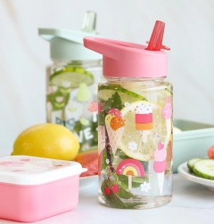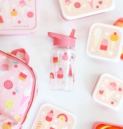 Ta modna steklenička iz zdravju neškodljivega materiala Tritan je lahka, trpežna in zasnovana za vsakodnevno uporabo. Zahvaljujoč praktičnemu zapiranju in slamici otroci pijejo udobno in brez polivanja. Prosojno ohišje z igrivim motivom sladoleda spodbuja pitje in iz stekleničke naredi priljubljenega spremljevalca na poti.