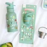 Praktičen komplet znamke A Little Lovely Company za 350 ml steklenico iz nerjavnega jekla vključuje pokrovček, slamico in čistilno ščetko. Slogovni motiv jagod bo navdušil otroke, enostavna menjava podaljša življenjsko dobo steklenice, čista slamica pa zagotavlja higiensko pitje.