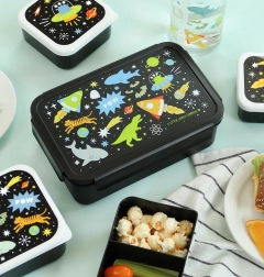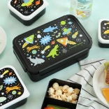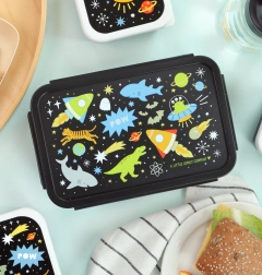 Stilska otroška škatla za malico z vesoljskim motivom je idealna za v šolo in na izlete. Ima zrakotesen pokrov na zaponke, odstranljivo posodico z dvema predelkoma in prostornino 1,2 l za pregledno in sveže shranjevanje prigrizkov skozi ves dan.