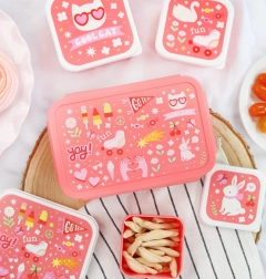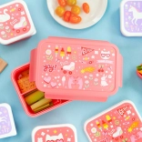 Otroška škatla za malico A Little Lovely Company je odlična izbira za vsakodnevno uporabo. Praktičen pokrovček na klik ohranja vsebino svežo in varno zaprto, medtem ko odstranljiv pladenj z dvema predelkoma pomaga ločiti posamezne dele obroka. Zahvaljujoč prostornini 1,2 litra sprejme vse od sendvičev do sadja in prigrizkov.