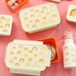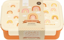 Praktična otroška škatla za malico z motivom mavrice je idealna za v šolo in na izlete. Zahvaljujoč zrakotesnemu pokrovu na zapon in odstranljivi posodici z dvema pregradama bo hrana ves dan ostala sveža in pregledno urejena. Prostornina 1,2 l nudi dovolj prostora za raznoliko malico, ki jo bodo otroci vzljubili.