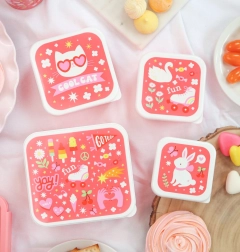 Odkrijte praktičen set 4 škatlic za malico znamke A Little Lovely Company, ki zaradi različnih velikosti odlično pokrijejo kosilo, sadje, zelenjavo in drobne prigrizke. Škatlice imajo enoten igriv potisk in jih je mogoče preprosto zložiti eno v drugo, zato doma zavzamejo komaj kaj prostora.