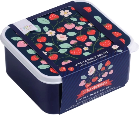 Praktičen set štirih škatlic za prigrizke v štirih velikostih z motivom jagod. Škatlice se zlahka odpirajo, lahko jih pospravite ena v drugo za prihranek prostora in so iz trpežnega PP materiala – idealne za kosilo in prigrizke v šoli, vrtcu ali na izletih.