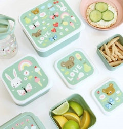 Ta set prinaša igriv dizajn in pametno rešitev za vsakodnevno pakiranje hrane. Štiri različne velikosti olajšajo razdeljevanje prigrizkov in pregledno organizacijo. Zahvaljujoč zložljivi zasnovi se škatlice po uporabi kompaktno pospravijo ena v drugo.
