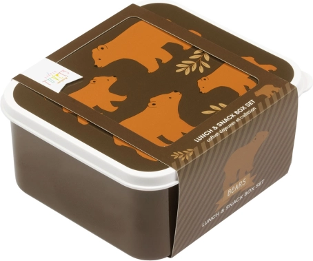Ta praktični set vsebuje štiri škatlice za malico v različnih velikostih, vse z enakim igrivim motivom rjavih medvedov. Ker jih lahko vstavite eno v drugo, prihranite prostor v kuhinji in nahrbtniku, hkrati pa zlahka izberete idealno velikost za sadje, piškote ali sendvič. Primerno za vsakodnevno uporabo doma, v šoli in na poti.