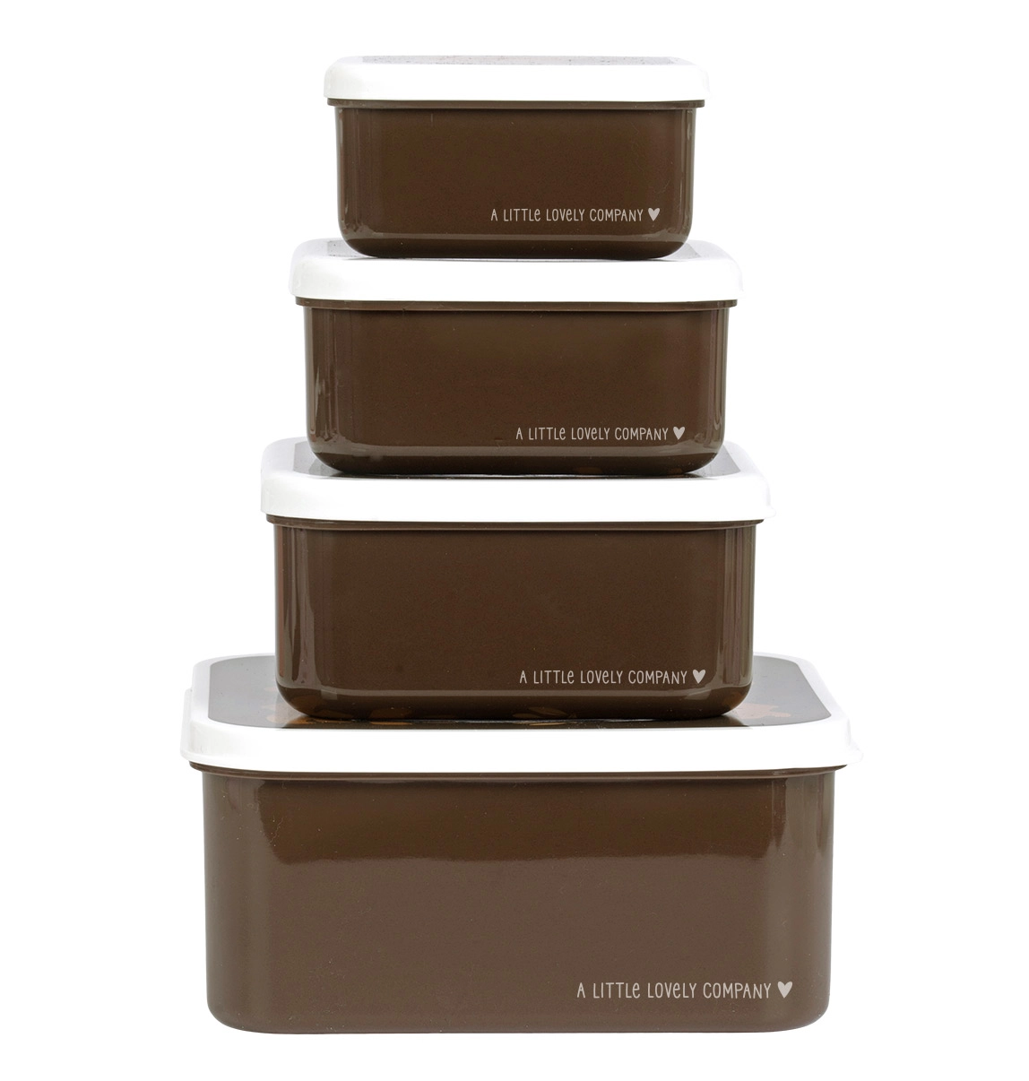 Set 4 škatlic za malico A Little Lovely Company z motivom medvedov. Štiri velikosti, zložljive, enostavno odpiranje. PP material, ne za pomivalni stroj in ne za mikrovalovno pečico.