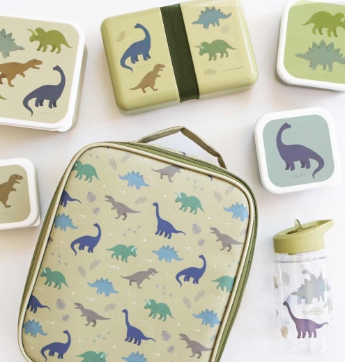Odkrijte vsestranski set posodic za malico z motivom dinozavrov, ki bo otrokom pričaral nasmeh, vam pa olajšal organizacijo hrane. Štiri različne velikosti pokrijejo vse od sendvičev do sadja ali piškotov, po uporabi pa jih preprosto vložite eno v drugo.