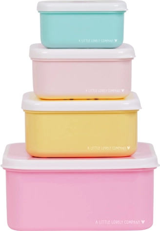 Set 4 škatlic za malico A Little Lovely Company z gozdnimi živalicami v rožnati. Štiri velikosti, zložljive, enostavno odpiranje. Idealno za šolo in izlete.