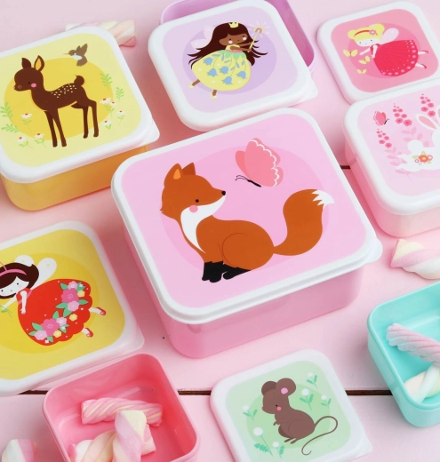 Ljubek set štirih škatlic za malico A Little Lovely Company z motivom gozdnih živalic v rožnati barvi bo razveselil otroke in starše. Škatlice so v štirih velikostih, enostavno se odpirajo in zapirajo ter jih je mogoče praktično zložiti eno v drugo za prihranek prostora. Idealne za kosilo, malico in drobne priboljške v šolo, vrtec ali na izlete.