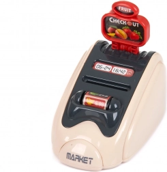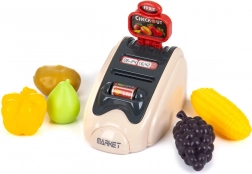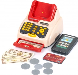 vsebuje 24 kosov dodatkov – podstavek, kovance, bankovce, plačilno kartico, mobilni telefon, živila in drugo,