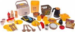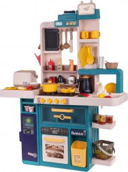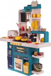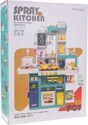 Del kompleta so tudi odpirajoči se hladilnik in pečica, praktične poličke za shranjevanje živil in posode, tabla za kredo za nakupovalne sezname ali recepte ter glasbeni panel z melodijami in zvoki nape. Parni kuhalnik za riž dodatno oddaja paro in avtentične zvoke. Celoten set sestavlja 80 delov dodatkov za dolge ure zabave.