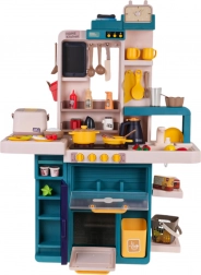 Ta prostorna kuhinjica iz kakovostne plastike očara otroke z živimi barvami in številnimi interaktivnimi elementi. Vrtljivi gumbi aktivirajo zvoke kuhanja in pečenja ter hkrati prižgejo osvetljene gorilnike. V koritu teče prava voda, iz ponve ali lonca pa se sprošča nežna, varna para, ki okrepi realističen doživetje igre.