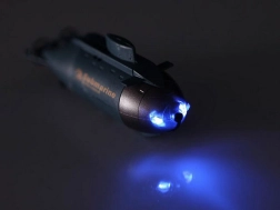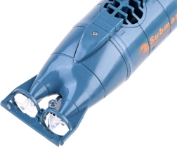 Ta mini podmornica je zasnovana za enostavne in zabavne vodne pustolovščine. Zahvaljujoč radijski frekvenci 49 MHz se odziva zanesljivo in gladko – pluje naprej in nazaj, zavija desno in levo ter se zna nadzorovano potopiti pod gladino. Sprednje LED luči poskrbijo za atraktiven učinek tudi v slabših svetlobnih razmerah.
