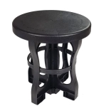 Črn plastičen stolček z zaobljenimi nogami ponuja udobje in stabilnost pri igranju. Je lahek in enostavno prenosljiv za različne priložnosti.