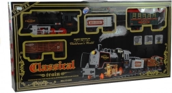 Ta fantastičen set vključuje 27 delov, vključno z lokomotivo, tremi vagoni, železniško postajo in 22 različnimi tirnicami. Tirnice se enostavno sestavijo in omogočajo različne kombinacije, kar omogoča neomejene možnosti pri igri. Lokomotiva se lahko premika naprej in nazaj ter med vožnjo sprošča realističen dim, dopolnjen s svetlobnimi in zvočnimi učinki.