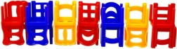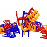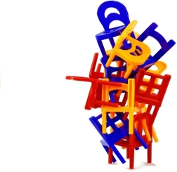 .Vsak igralec postopoma zloži en stol na drugega tako, da se zloženi stolp ne poruši. Zlagajte barvne stole enega na drugega in ustvarite čim večji stolp. Tisti, ki mu ne uspe ohraniti stabilne stoječe piramide, izgubi. Že zloženih stolov se ne sme dotikati niti jih premikati. Stolp lahko zlagate v več osebah ali samostojno.