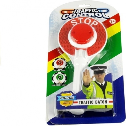 Policijska igrača pomaga pri učenju pravil cestnega prometa. Otrok bo z njeno pomočjo razumel, da rdeča barva pomeni ustavitev, zelena pa dovoljuje vožnjo. Igrača malega bodočega policista je priložena z dvema baterijama AA, ki sta že vključeni.
