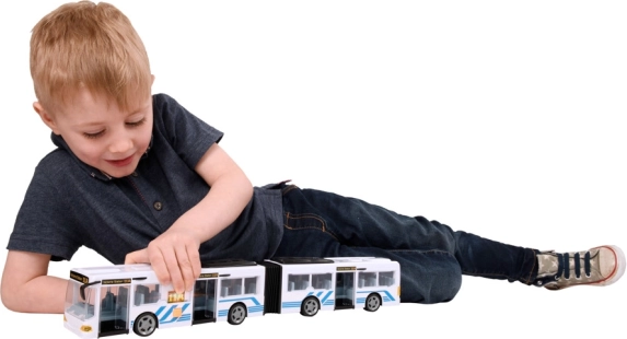 Ta avtobus je velik 46 cm in je popoln dodatek za otroško zbirko prevoznih sredstev. Paket vključuje 2 bateriji LR44 / AG13, potrebni za delovanje funkcij avtobusa.